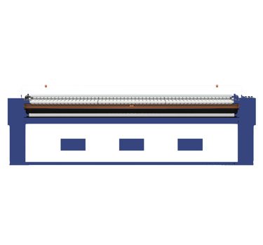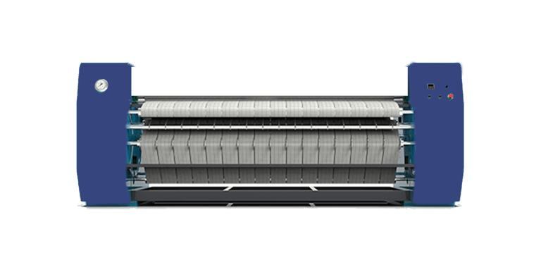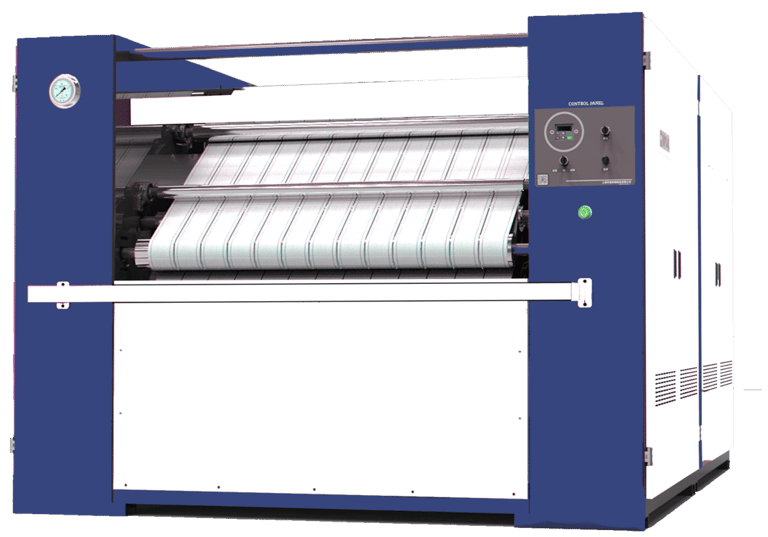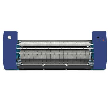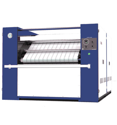 mesin setrika industri besar yang menggunakan rol berputar yang dipanaskan